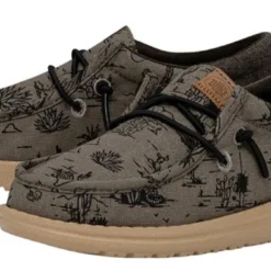 Hey Dude Children’s Wendy Chambray Woven White Sand Slip Ons