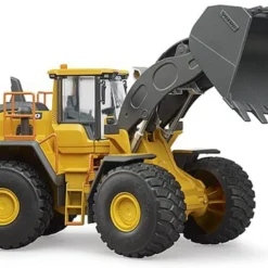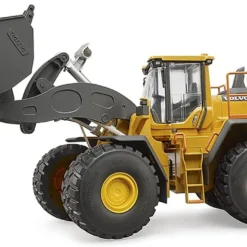 Efficiency in transport and the conservation of resources are key requirements for modern construction machines. Hardly any wheel loader combines these requirements as well as the new Volvo L260H. Thanks to the most modern engine, automatic and hydraulic combination, the fuel consumption is 10% lower than its predecessor. With a working weight of up to 35 tonnes, this loader is a real heavy worker for quarries and gravel works. This impressive wheel loader is the latest highlight in the theme world of construction vehicles at BRUDER. The model of the Volvo L260H is equipped with a fully functional loading arm and an impressive, tiltable shovel. The detailed cabin serves as a workstation for the well-known BRUDER bworld figures. The engine hood in the rear can be opened for various service work.