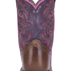 The Majesty is a darling boot with durable leather for life’s big adventures. The brown foot is paired with a purple shaft accented in pink stitching and piping. Also comes with a broad square toe, Comfort Cushion insole, and a rubber outsole for traction.