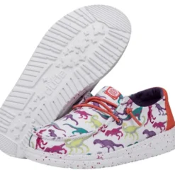 Hey Dude Girls Wendy Youth Dino White/Pink Casual Shoes