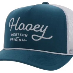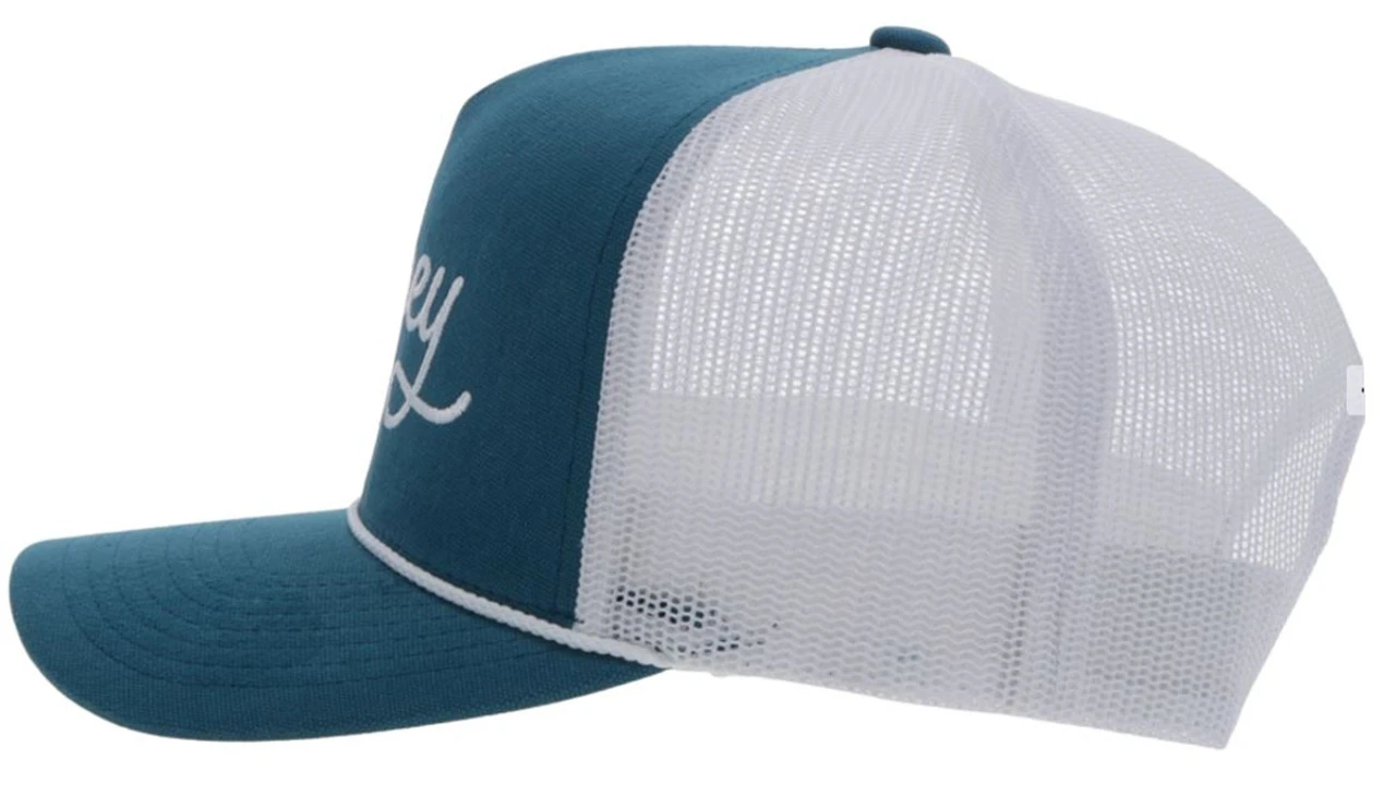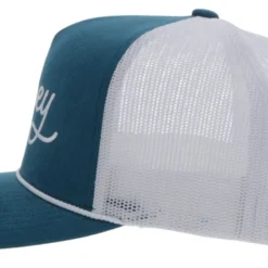 Hooey Caps are for anyone who lives the true western life. This OG adjustable cap provides a comfortable fit and includes an adjustable mesh back. The hybrid bill of the ball cap stays flat or bends to your preferred shape. Teal and white cap with white Hooey stitching Polyester / Cotton / Spandex Breathable Mesh Back Adjustable Snap Band One size fits most Hybrid Bill Imported
