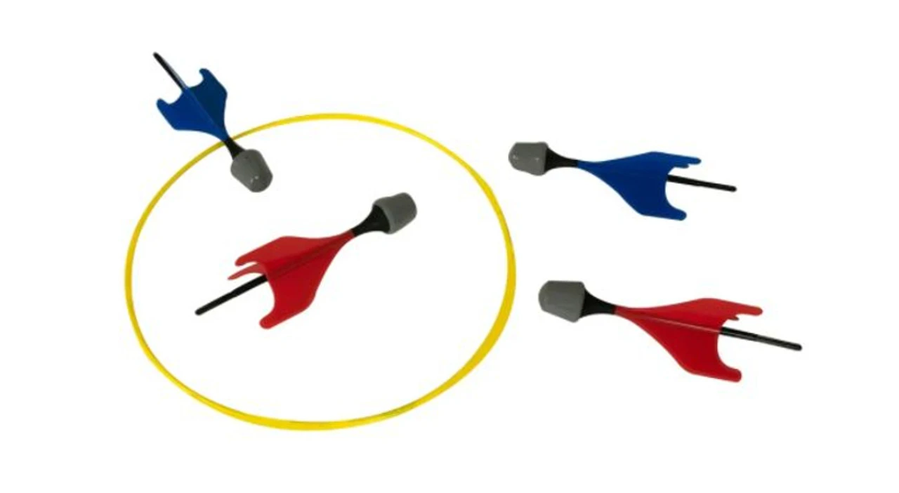 A Fun Outdoor Game for 2 to 4 players for Parties, Picnics and even at the Beach. Players attempt to Land their Darts into the two provided Yellow Target Rings to Score Points. Darts have a Safety Tip to help Prevent Injury. Intended for children ages 8 years and older.