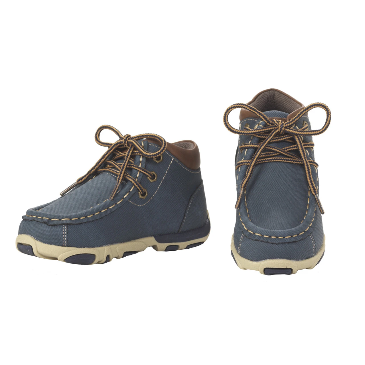 These adorable Twister chukka boots by M&F Western Products offer all day comfort and durability for your little one. These shoes will look great with jeans or shorts. These casual shoes are created with top quality man-made materials and made of soft material for added comfort. Easy on/off with laces. And they have a non marking TPR outsole