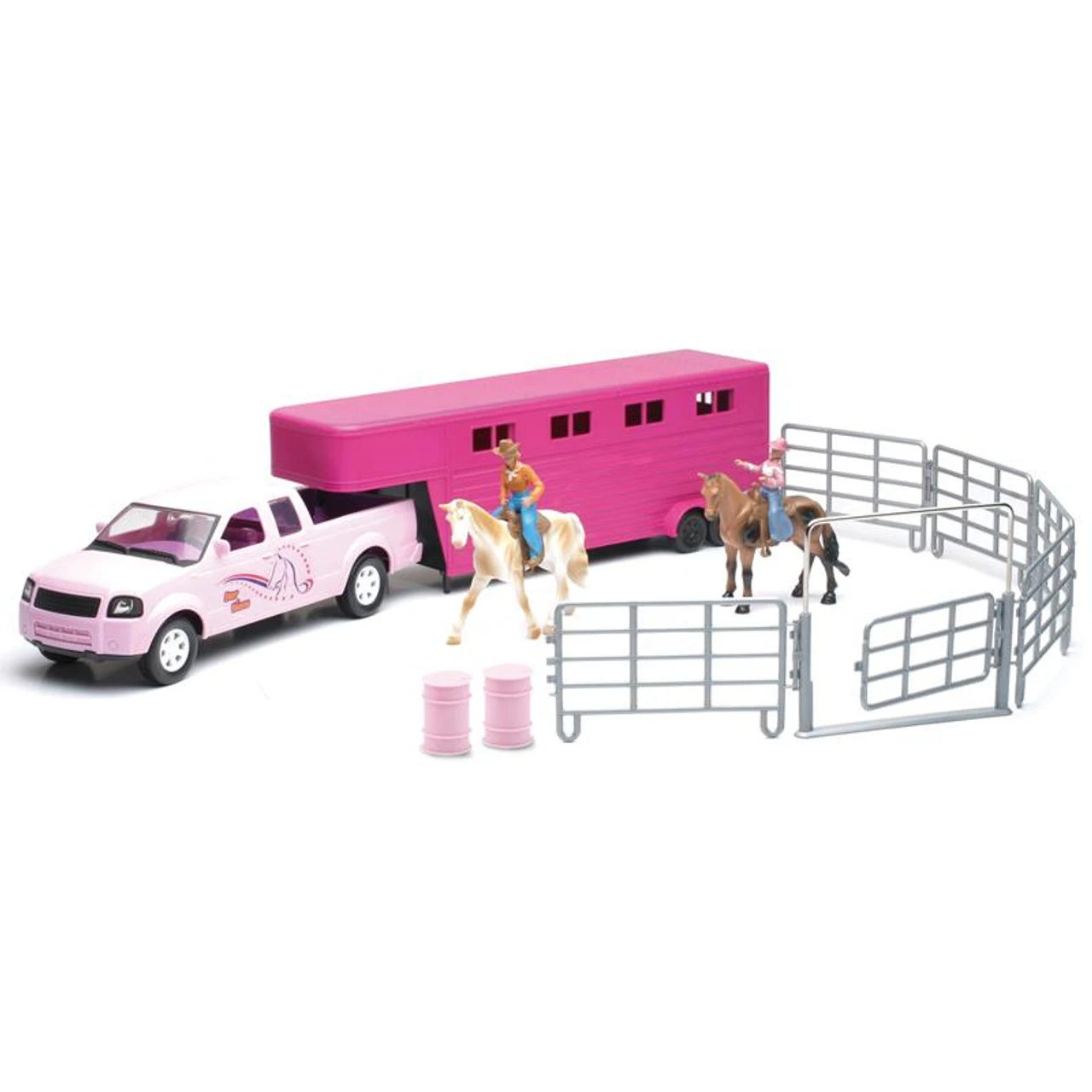 Ray Toys- Valley Ranch Pink Pick Up & Horse Trailer Set- Pink